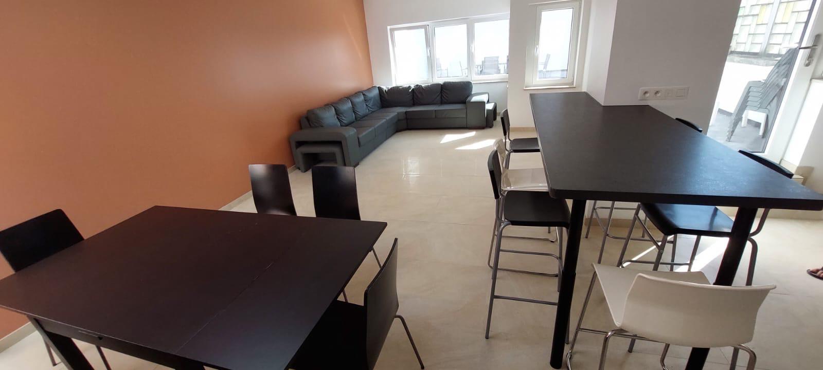 Cuisine équipée, salle cinéma, bar, terrasse. Plus de 120m² d'espaces partagés conçus pour que vos équipes se retrouvent dans un cadre convivial après une journée de travail.